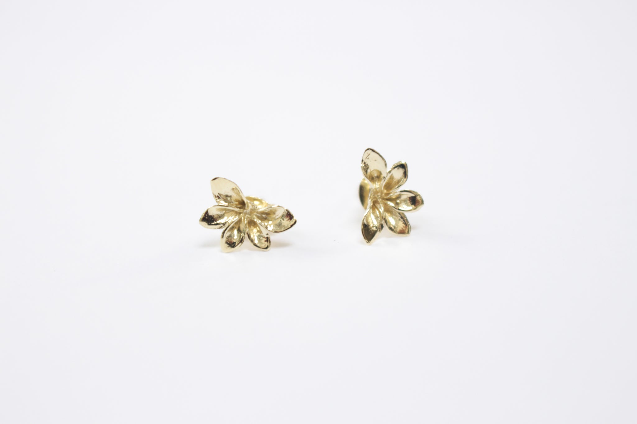 aretes en plata 925 de flores pequeñas con pétalos arrancados, haciendo alusión al juego de niños. También con baño de oro de 18k